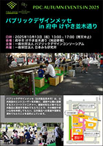パブリックデザインメッセ in 府中けやき並木通り 日 時:2025年10月13日(月・祝) 13:00~16:30 会 場:府中市けやき並木通り 共 催:一般財団法人日本みち研究所